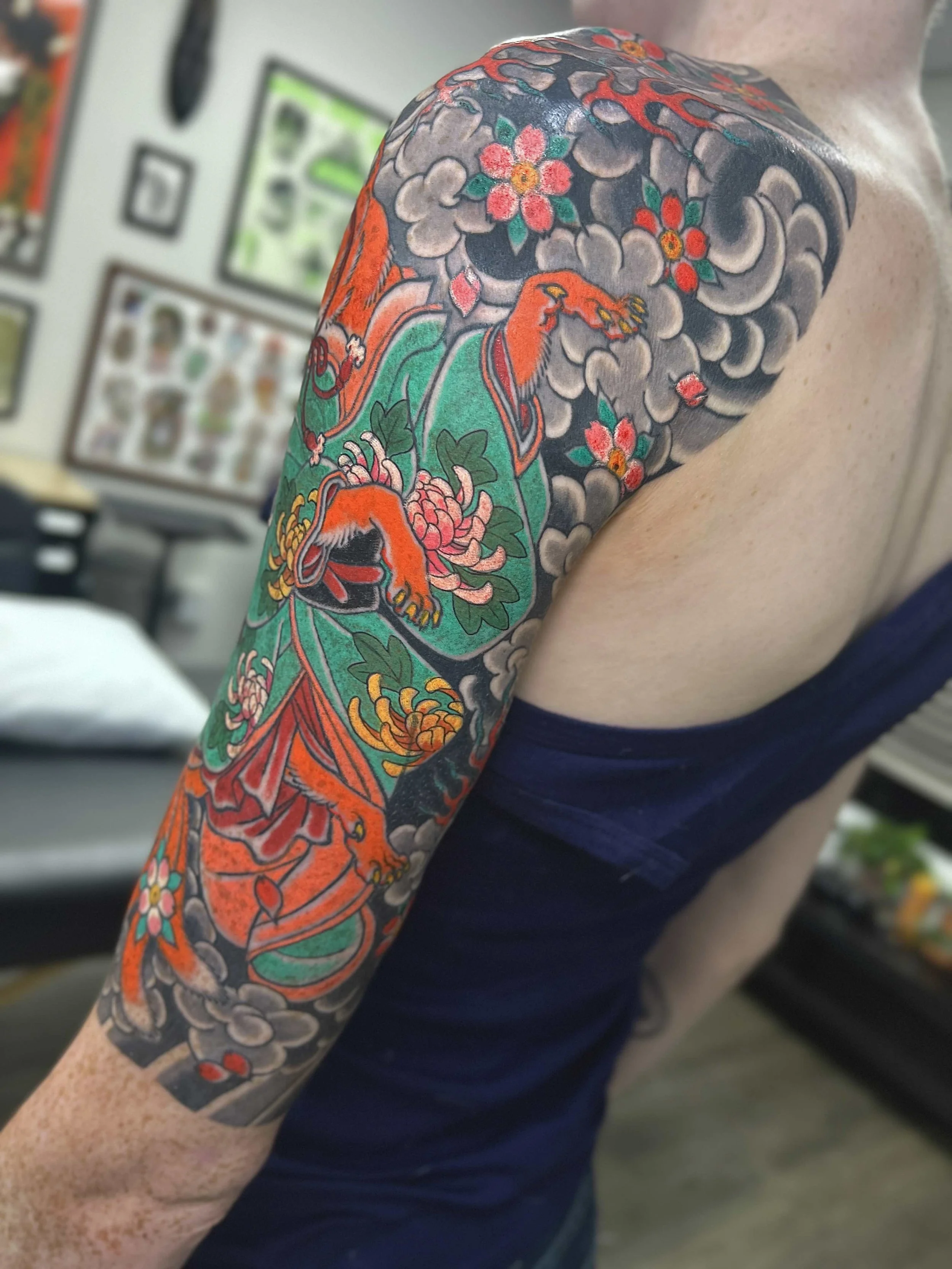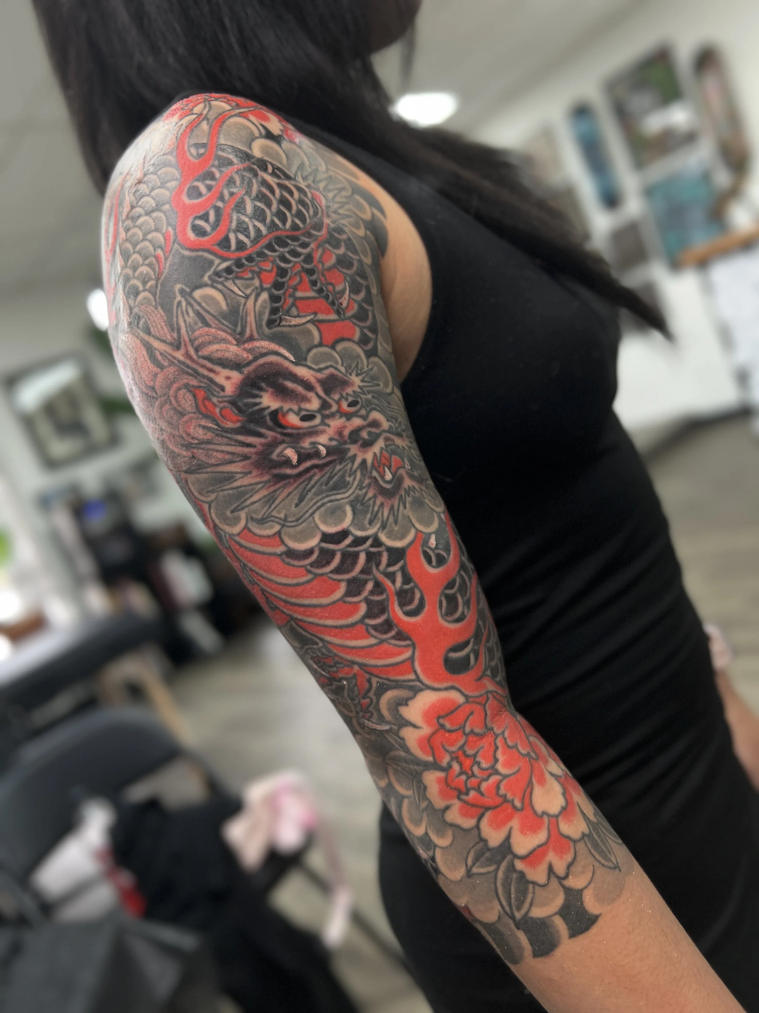 Japanese tattooing is built around the relationship between imagery, movement, and placement on the body. Each design is developed with the goal of creating a balanced composition that remains visually strong over time.