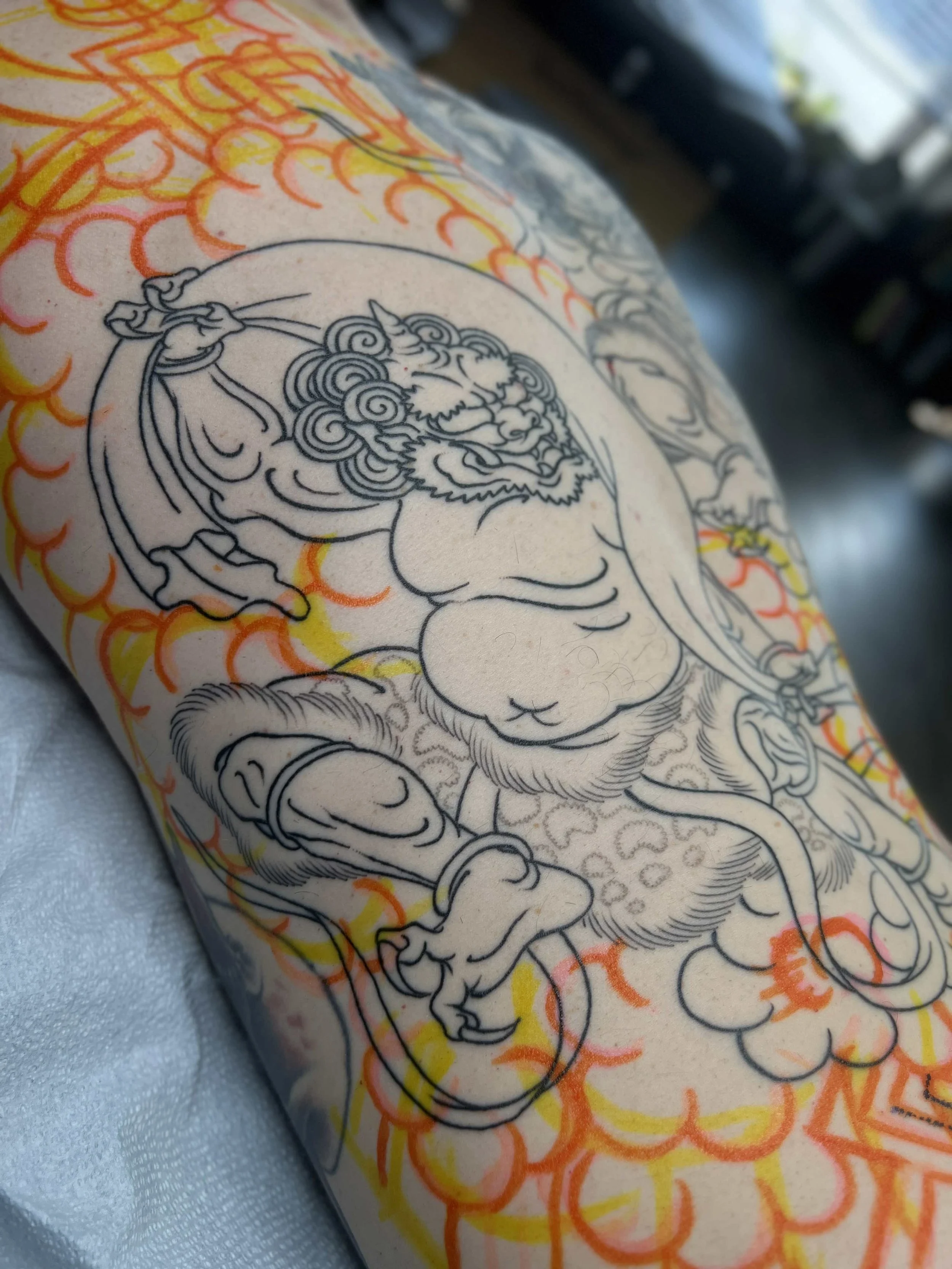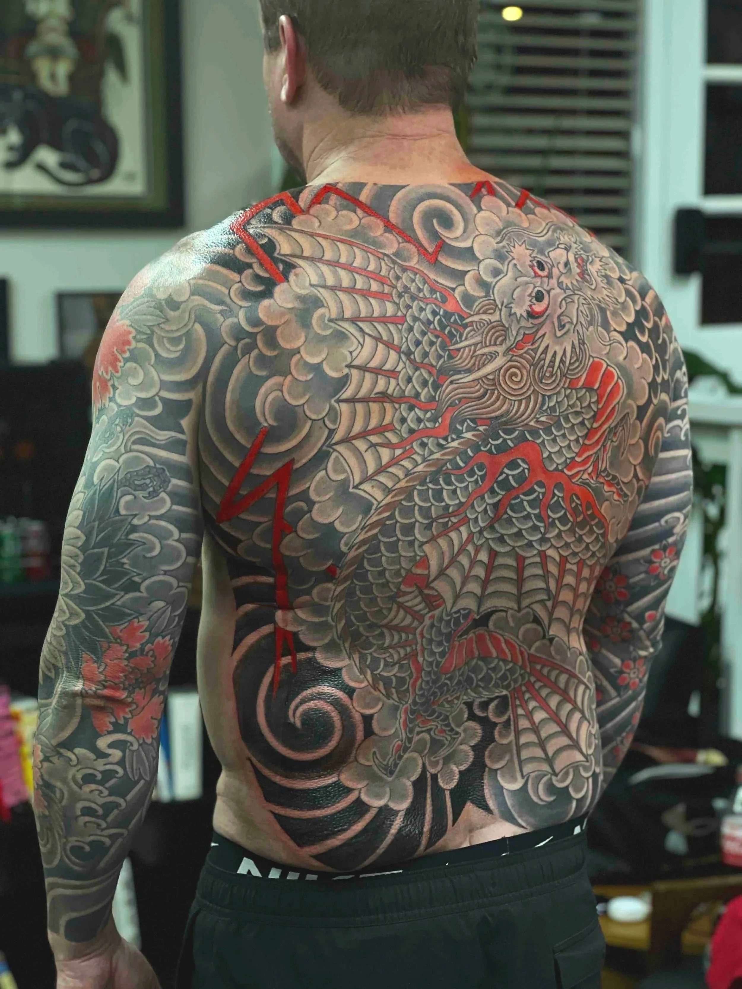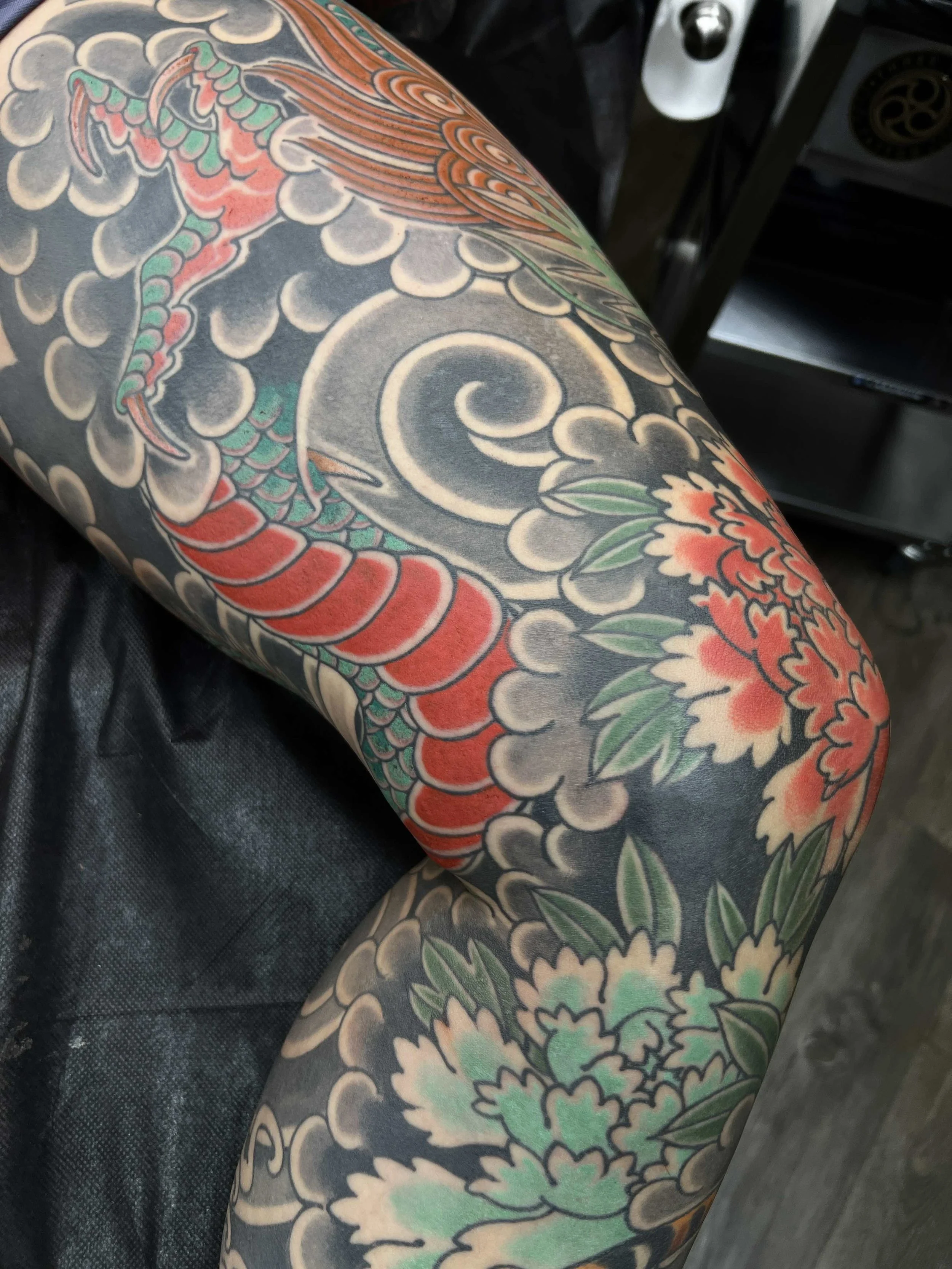 Large-scale Japanese tattoos with Wes are built as full intentional compositions from the start.