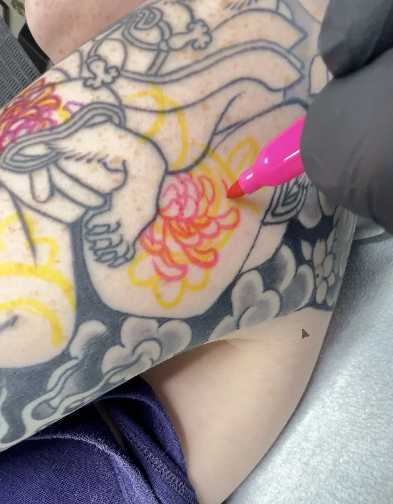 Large Japanese tattoos begin with a consultation to discuss design ideas, placement, and overall direction.
